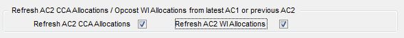 Click the check-box in the Refresh AC2 CCA WI% Allocations section. You also have the option to refresh OpCost wI% Allocations: