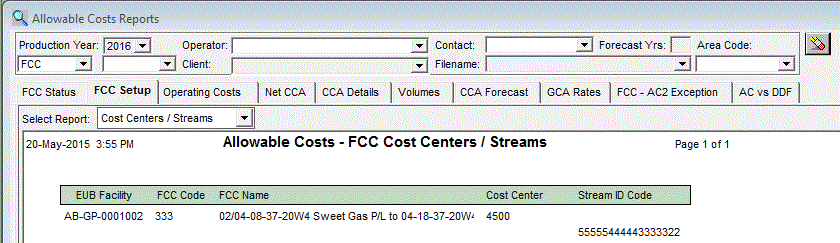 The Allowable Costs Cost Center/Streams Report is used to report the Cost Center and Stream ID Code for each Facility.