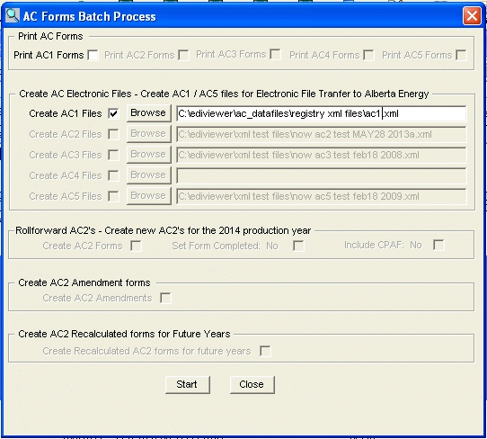 - Choosing to create AC2-AC5 files only creates the one filename you specify. AC2-AC5 files are text files and the filename should end with .xml
