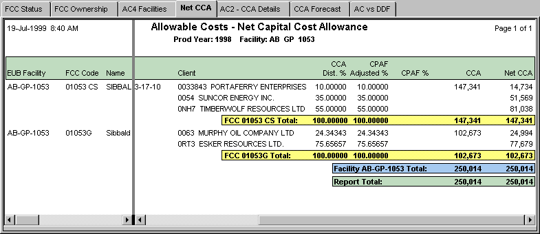 The Allowable Costs Net CCA Report is used to report on show net CCA available to all the clients involved in the FCC. You can see the CCA distribution % and CPAF Adjusted % by client code. This allows you to run this report for any client code so you can see just your companies net CCA total or the net CCA total for any partner.