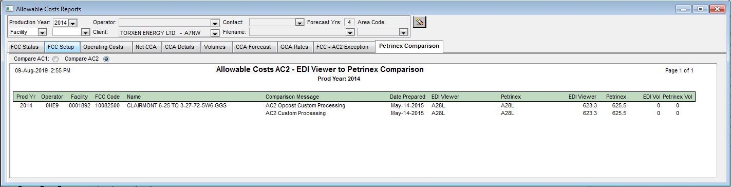EDI Viewer - Allowable Costs Petrinex Comparison Report |