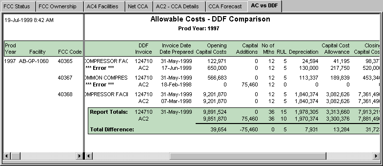 This report compares by FCC by production year the AC2 Part2 information in both systems and flags any errors where the amounts are different. This will also flag any errors where you have a non-operated FCC and your partner has failed to file the AC2 forms for the year you are comparing.
