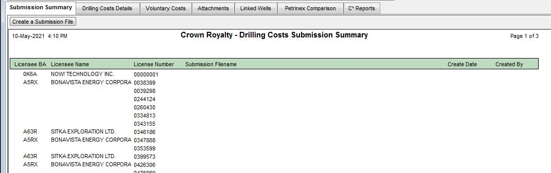 The Drilling and Completion Costs Reports window is used to review Drilling and Completion Costs data, and create Drilling and Completion Costs XML submissions files.