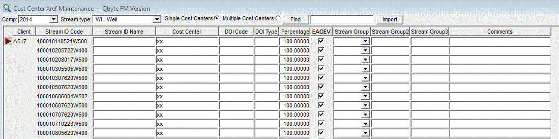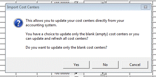 - The Import button in this window is used to fill in blank Cost Centers