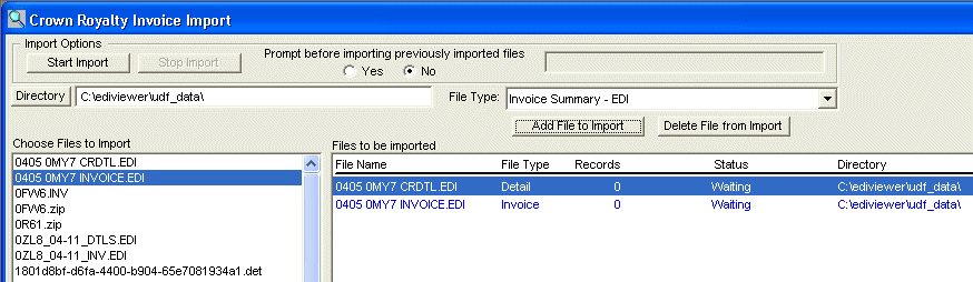 The Crown Royalty Invoice Import is used to bring files from Petrinex into EDI Viewer. Multiple files can be imported at the same time.