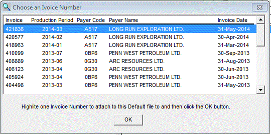 Invoice in order to provide a timeline for when the Defaults files were issued.