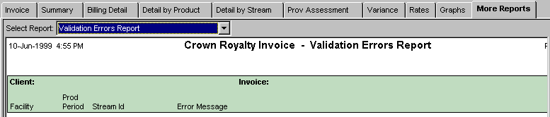 the More Reports tab on the Crown Royalty Invoice