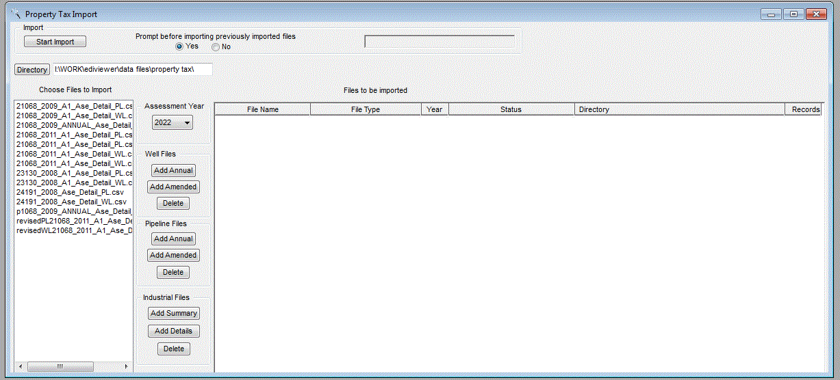 The Property Tax Import window can import multiple Well, Pipeline and