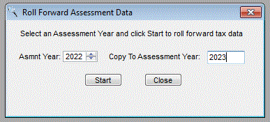 Assessment Values and Mill Rates will then be set to 0 in the new year, where they can be updated appropriately when possible.