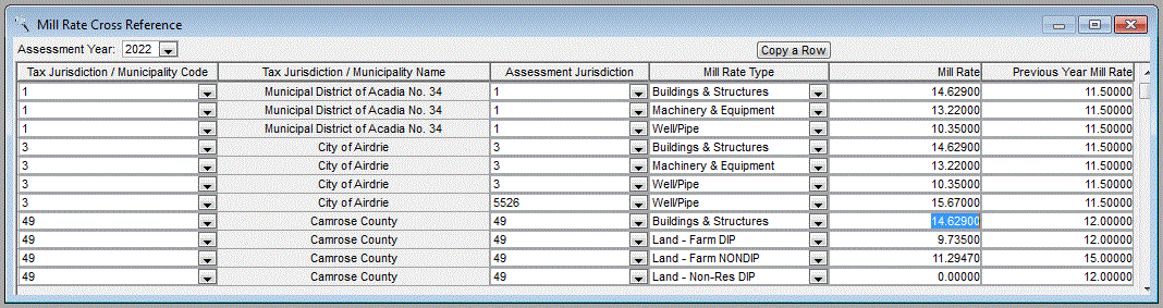 The mill rates entered in this window are used when calculating Tax Payable amounts.