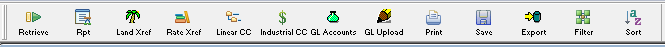 - Rate Xref: open the PT Mill Rates window. This window is used to enter data to apply mill rates used for tax calculations to imported assessment values.